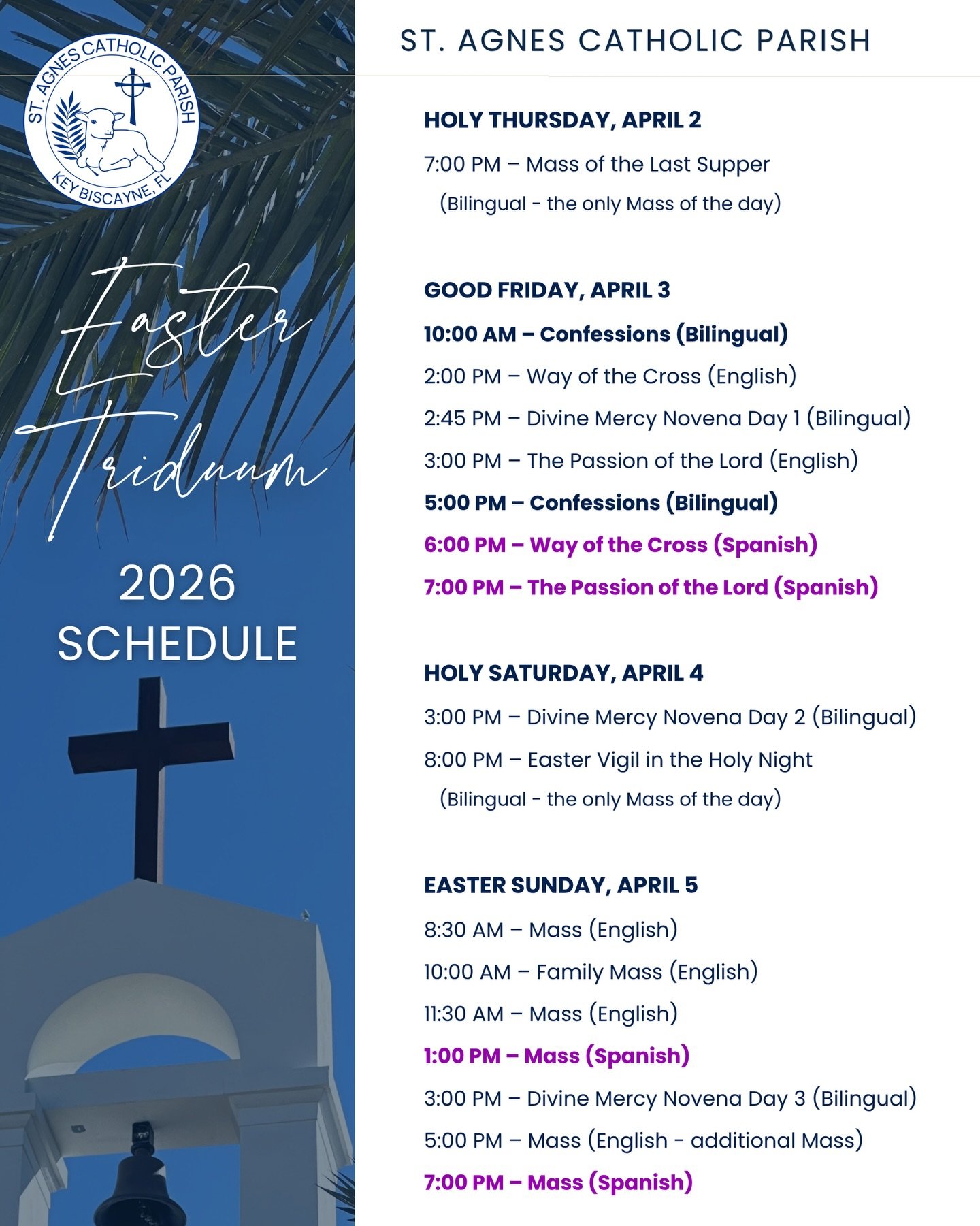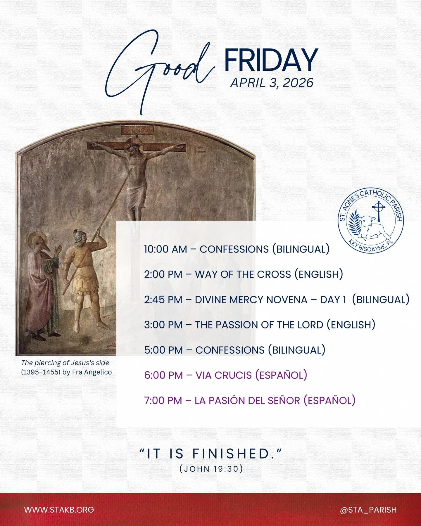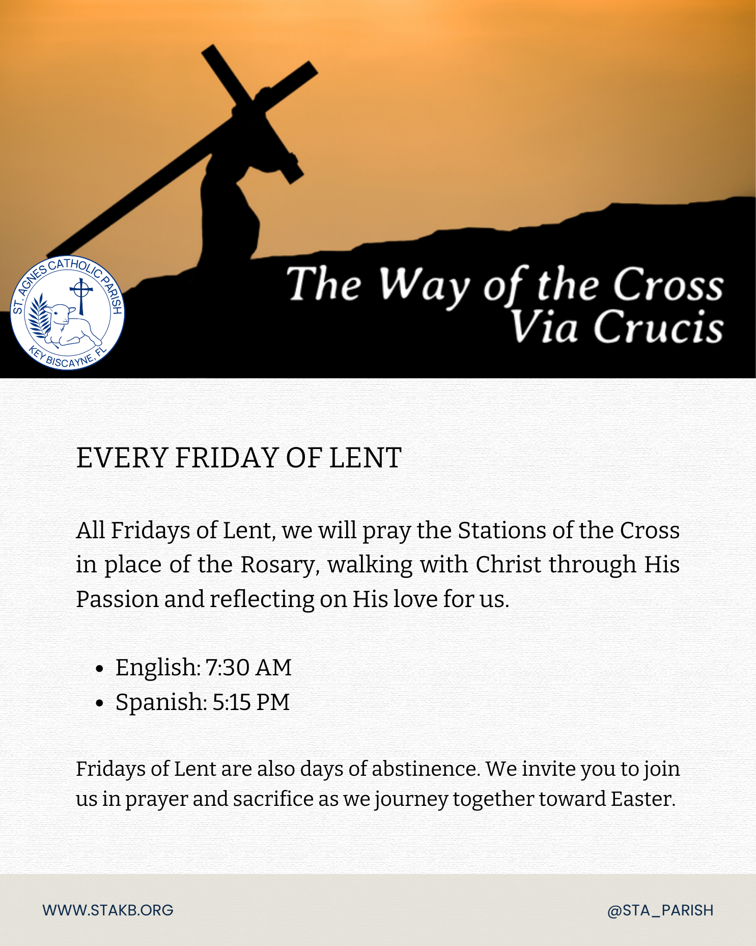 *All Fridays of Lent, we pray the Stations of the Cross instead of the Rosary. At 7:30 AM in English and 5:15 PM in Spanish.