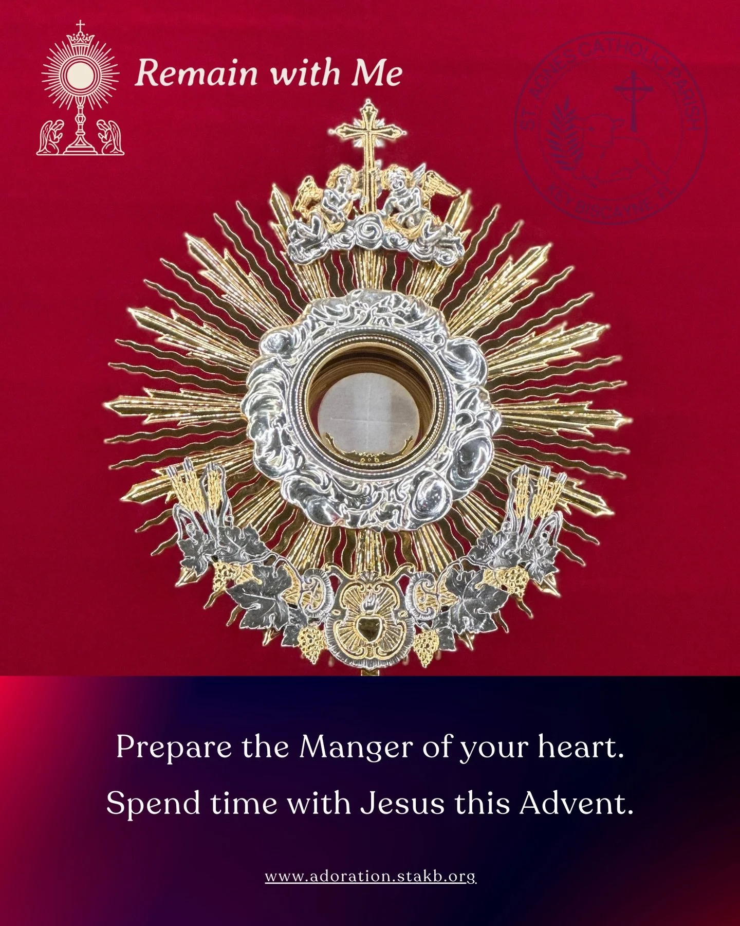 Every year, we invite parishioners to join our “Remain with Me” campaign by committing to one holy hour a week. Your presence sustains this sacred ministry of love and prayer.