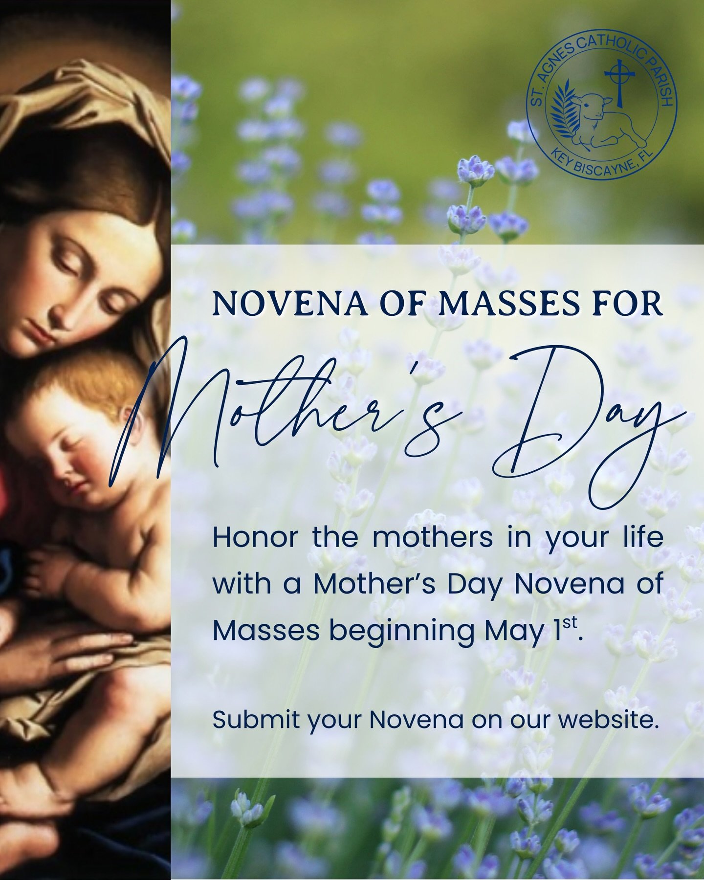 For Mother’s Day, we invite you to remember and honor all mothers, living and deceased, through our Mother’s Day Novena of Masses.