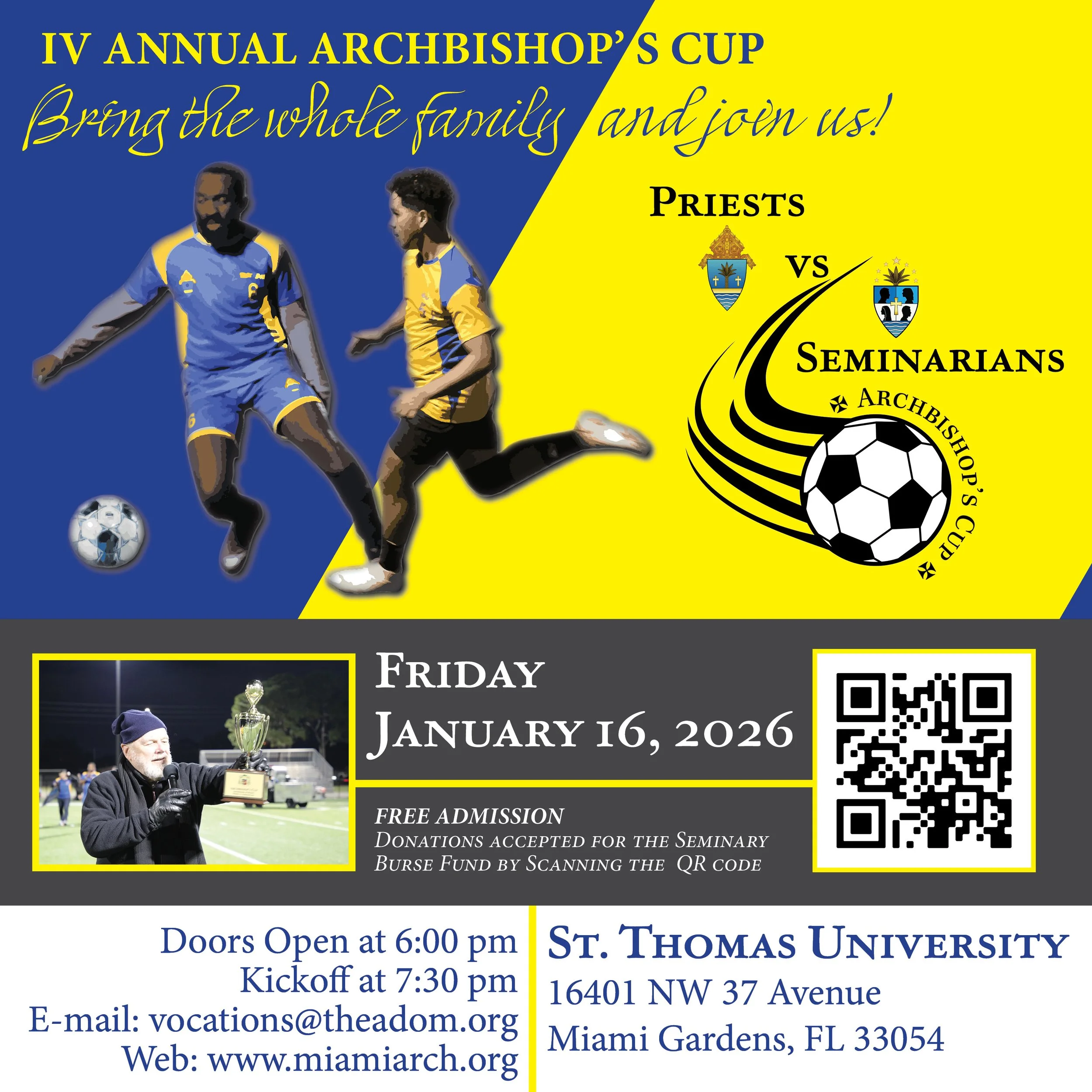 The Archdiocese of Miami invites you to the IV Annual Archbishop’s Cup: Priests vs. Seminarians! A night of faith, fun, and friendly competition!